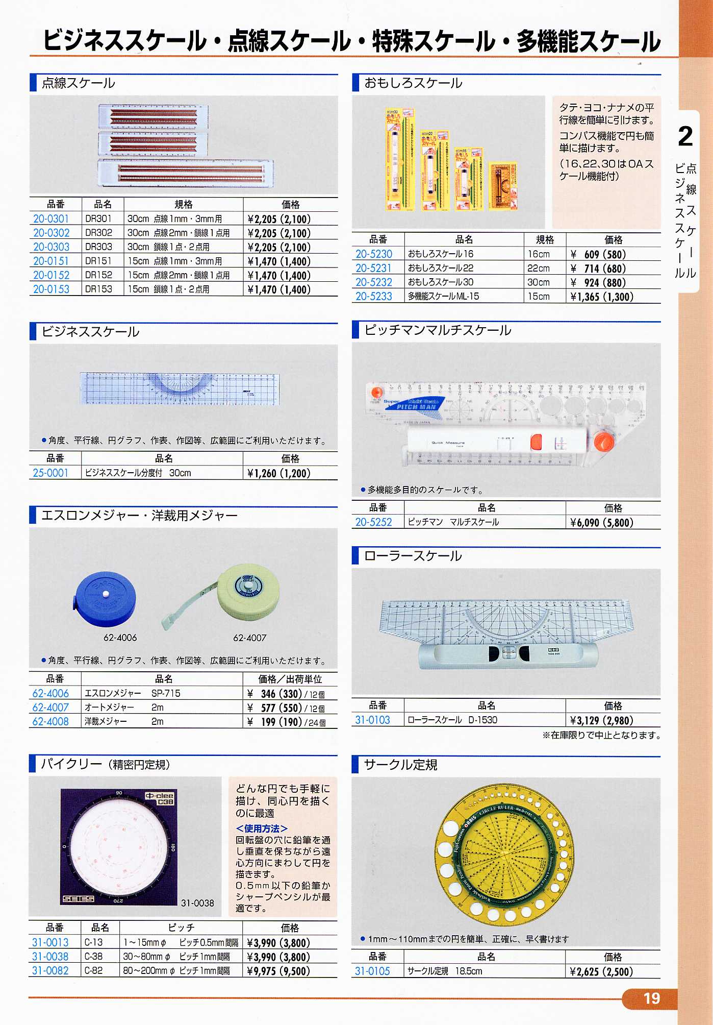 おもしろスケールは取り扱い中止商品です 25-0011ビジネススケール・20-5252ピッチマンスケール・31-0103ローラースケール・31-0105サークル定規は製造中止です御注意下さい